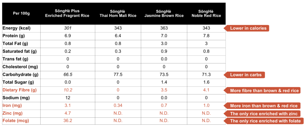 SōngHè Plus米粒含有以下营养成分: